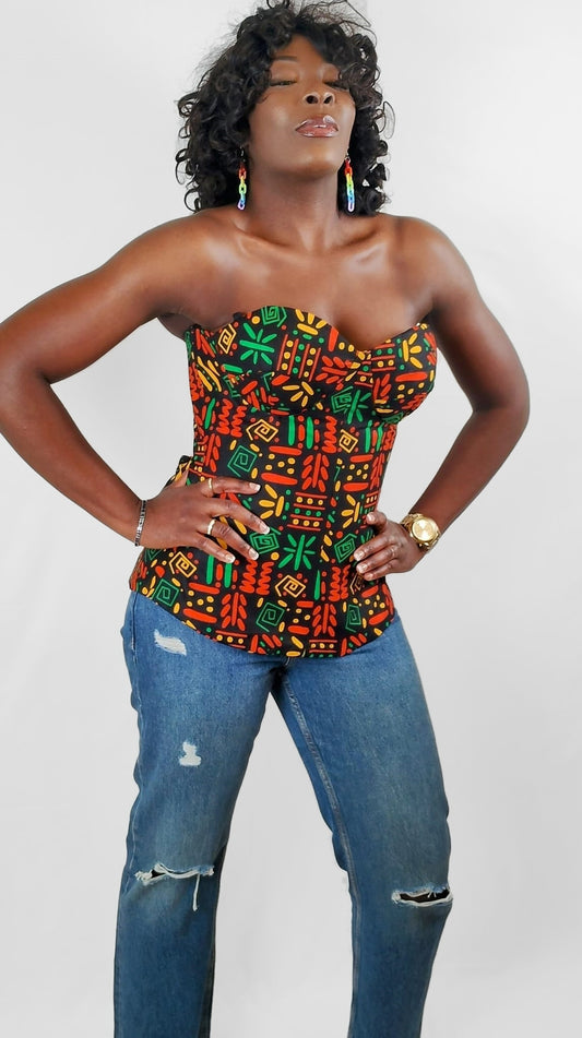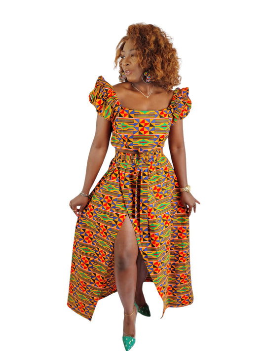 2-Piece Kente Wrap Skirt and Cropped Top African Print Uk Size 8-10-12-14