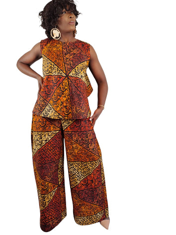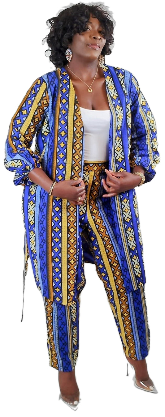 Belted Long Sleeve Jacket Kimono Style And Fitted High-Rise Ankle Pants African Print Uk Size 10 12 14